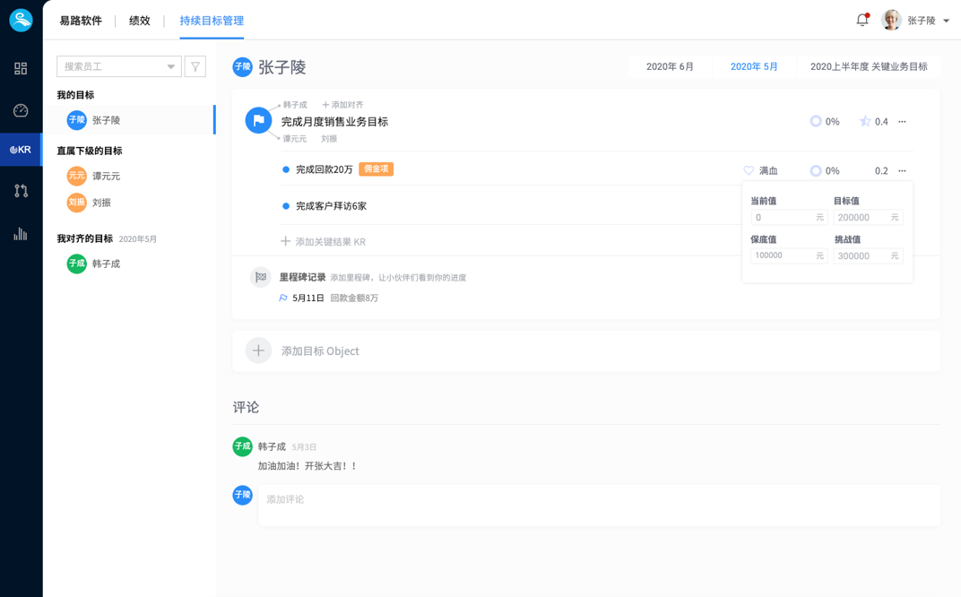 好的数字化系统满足绩效战略指标横向覆盖至各部门,纵向层层分解到员工。eRoad持续绩效支持上下全员目标对齐,员工对上下级、个人目标全知悉;管理者可批量查看员工等级分布、魔方视图,可快速甄选潜力人才,盘点团队绩效,节约目标执行与考核管理成本。绩效管理系统中特有的里程碑设置+KR信心指数、佣金型可量化目标快速结算,都是协助企业团队和员工完成最终绩效目标的数字化手段。