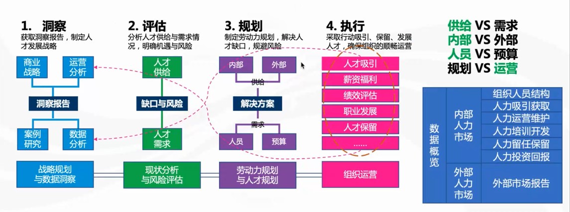 第四阶段目标:从战略出发,形成洞察、评估、规划、执行之间的良性闭环。通过不断优化体系和运营,配合战略调整,不断提升人效。最终实现数据驱动业务和创新,促进企业业务转型。