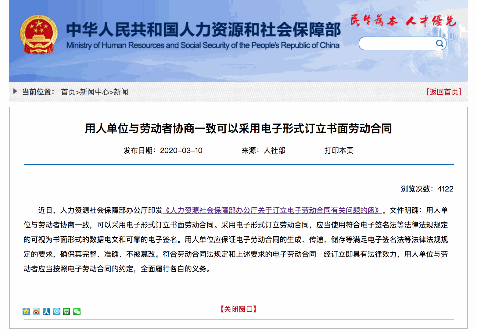 人社部发文认可电子劳动合同,无疑是肯定了电子劳动合同的合法性和合规性。