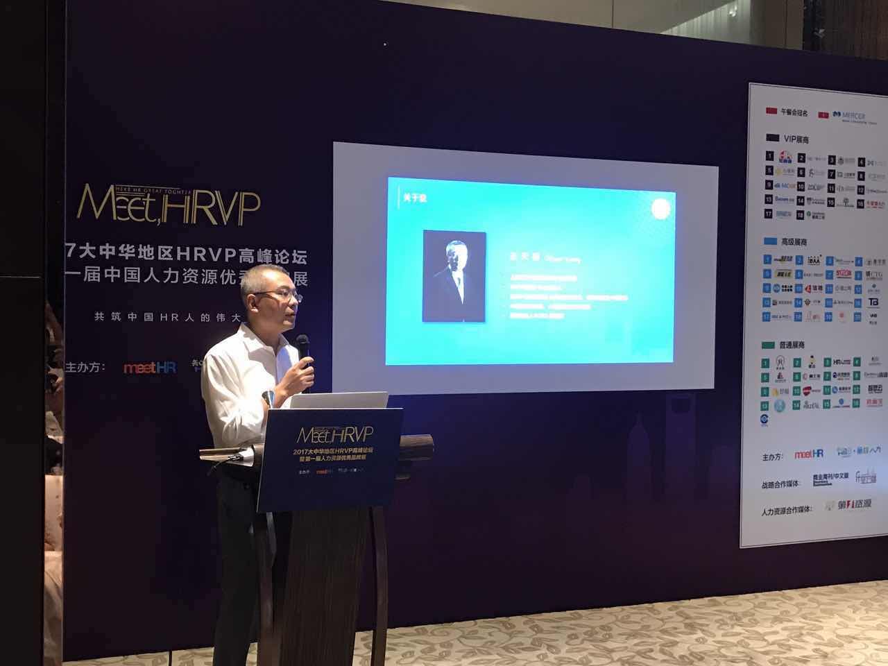 7月14日,中国最高级别的HR峰会论坛和最盛大的人力资源服务商展会“2017大中华地区HRVP高峰论坛暨第一届中国人力资源优秀品牌展”&“2017中国十大影响力人力资源优秀品牌颁奖大会”在上海浦东丽思卡尔顿酒店盛大举行。本次大会由上海三享两益青年职业发展促进中心(MeetHR招聘兄弟会)发起,上海市人力资源和社会保障局作为官方指导单位。顶级豪华HRVP阵容集结,汇聚了来自阿里巴巴、滴滴出行、联合利华等近300位精英HR。