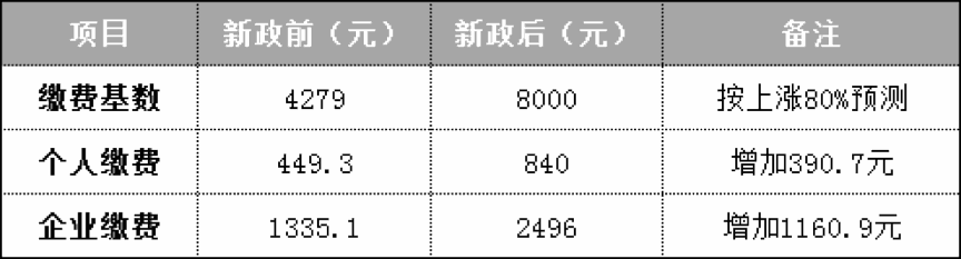 在税务部门征收社保前后,该企业人力成本对比(以月工资8000为例):