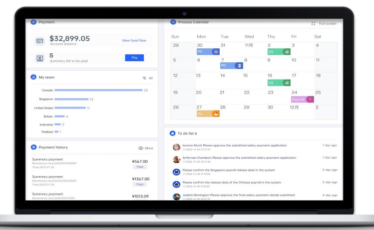 通过自动化工具,易路全球平台确保了薪资流程的透明性和合规性。这不仅加快了审批速度,还提高了整个流程的效率,减少了人为错误的可能性。系统可以自动识别和处理各种薪资相关的数据,如考勤记录、绩效评估结果等,并根据预设的规则进行薪资计算和审批。同时,系统还会实时监控薪资流程的各个环节,及时发现并解决可能出现的问题,确保薪资发放的准确性和及时性。