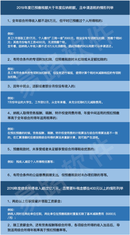 2、2019年度综合所得收入超过12万元且需要补税金额在400元以上的。