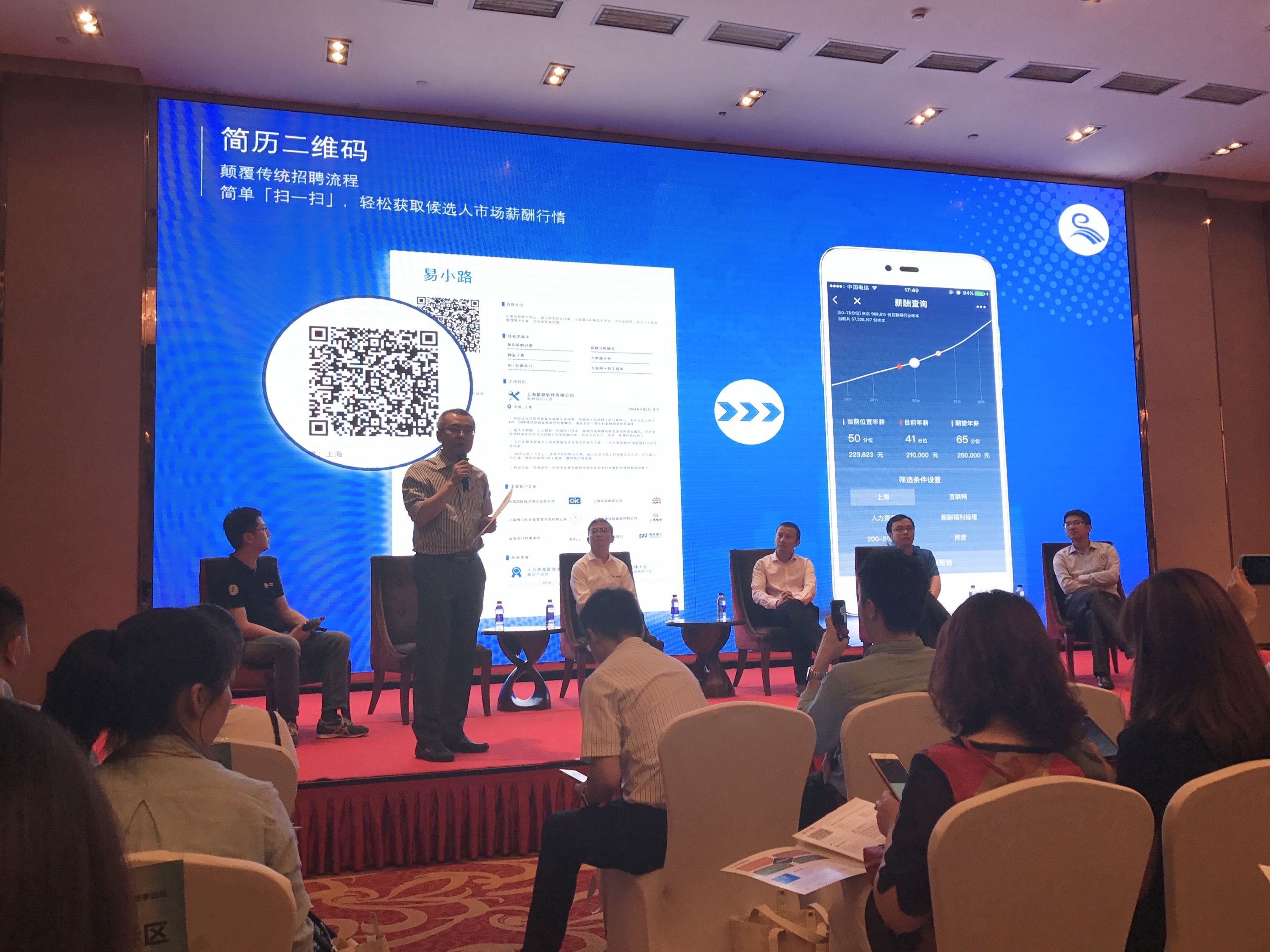 作为行业领先的eHR领域服务商,易薪路网络科技(上海)有限公司(简称:易薪路)创始人&CEO王天扬先生受邀出席,上台参与了主题为“HR大数据与人工智能的未来”的圆桌分享,并在此次分享中正式对外发布了易路首款基于AI及机器学习(Machine Learning)技术的薪酬智能分析平台——薪智™。