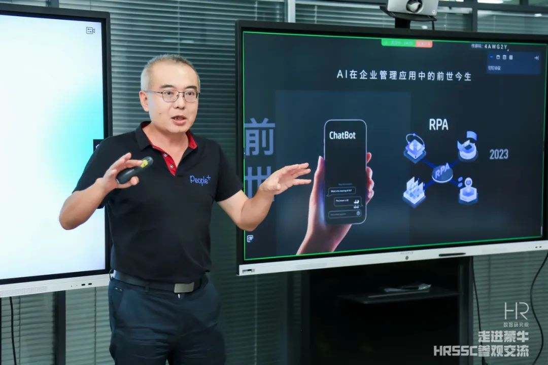 蒙牛HR共享服务中心高级总监高峰、人力数智规划部总监闫明、HR共享服务中心产品数据部负责人马小晴,以及易路人力资源科技董事长兼CEO王天扬、HR数智研究院常务理事崔晓燕等全程参与,与同行人员共同深入交流与探讨。