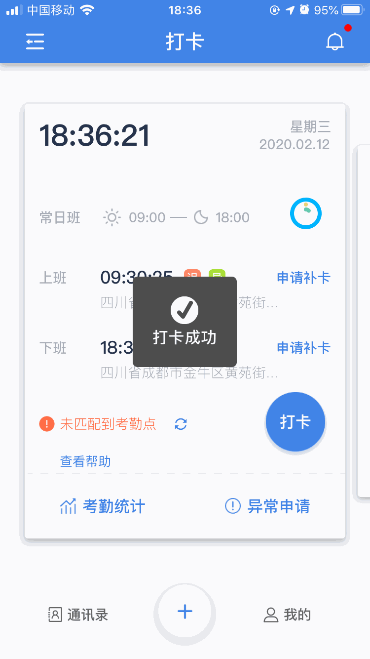 在员工打卡签到时,系统可准确记录下打卡定位,以确保员工完成隔离周期。
