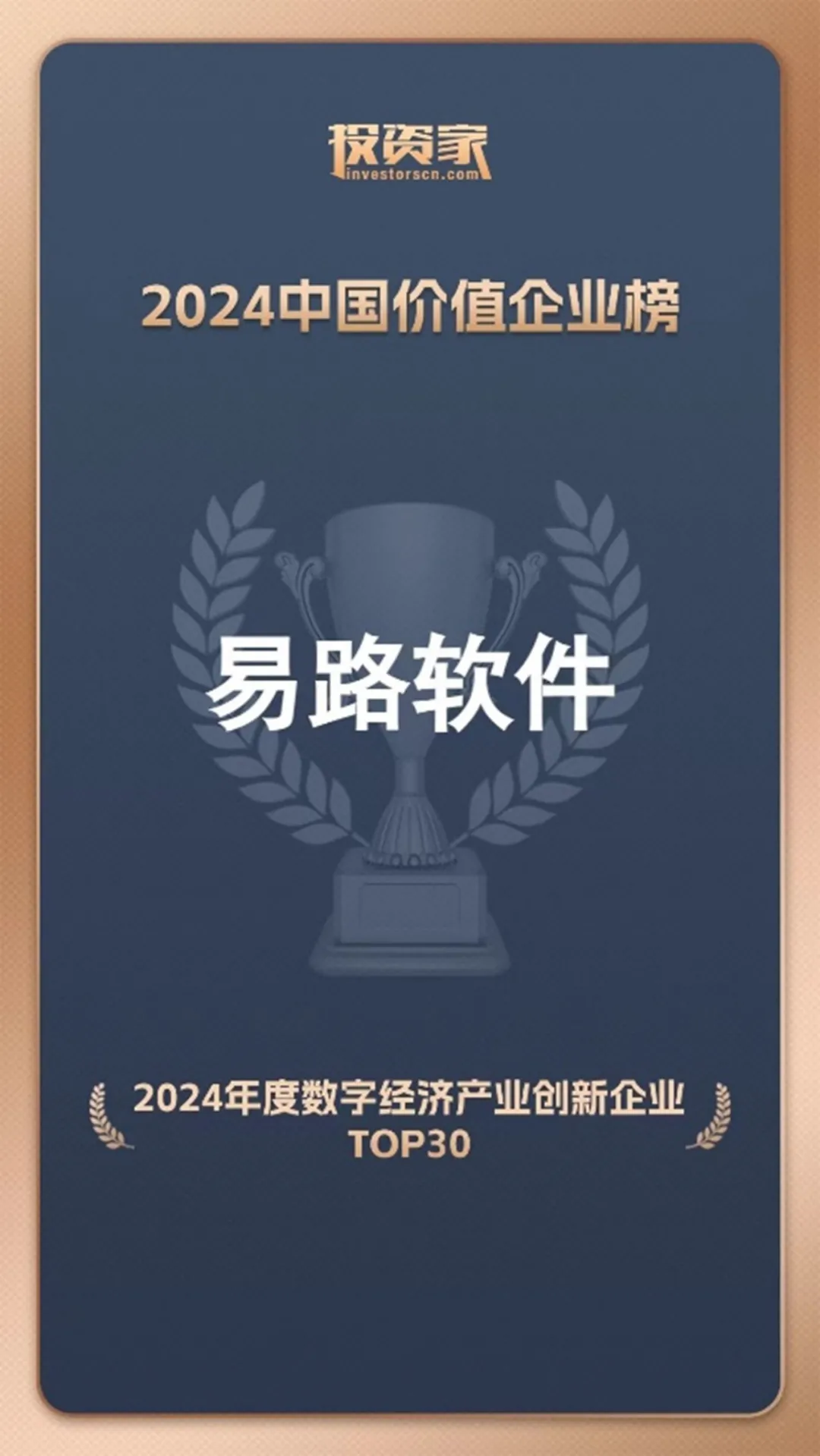 11月29日,“投资家网·2024中国价值企业榜”重磅发布,易路人力资源科技入选“2024年度数字经济产业创新企业Top30”,成为人力资源领域唯一入选厂商。