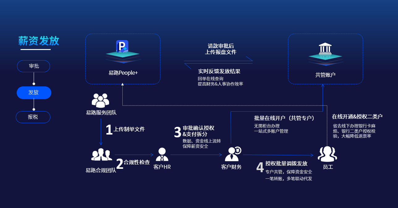 解决方案:HR部门可让渡部分非核心的“管理权”,交给专业的数字化服务团队处理,代理社保缴纳,个税申报与薪资核算等流程。