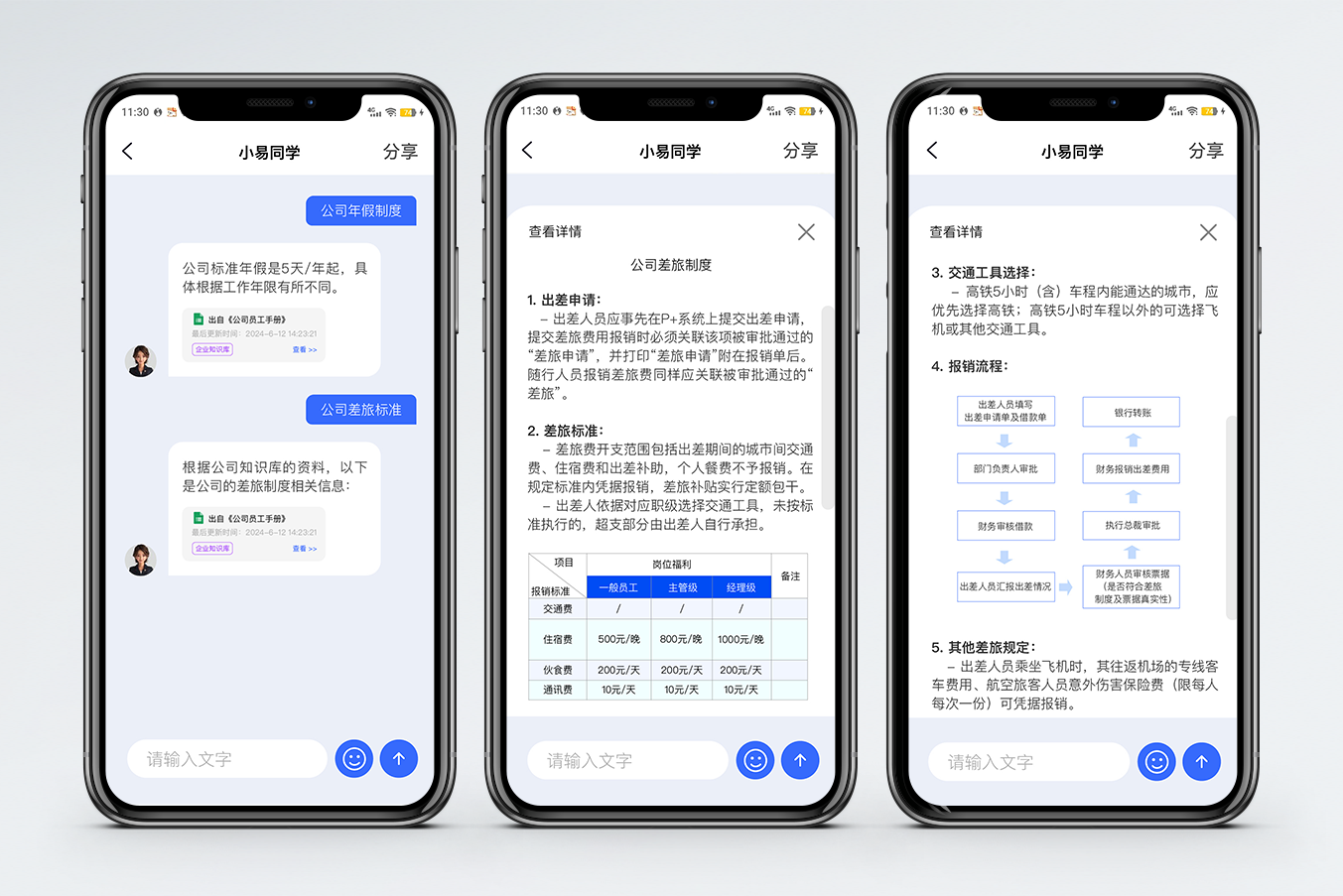 除此之外,基于多业务系统集成等,小易同学还可为企业人员实现工资单查询、请休假、报销等自助服务。新技术大幅提升员工体验,扫除“政策盲区”、确保“HR服务实时在线”。