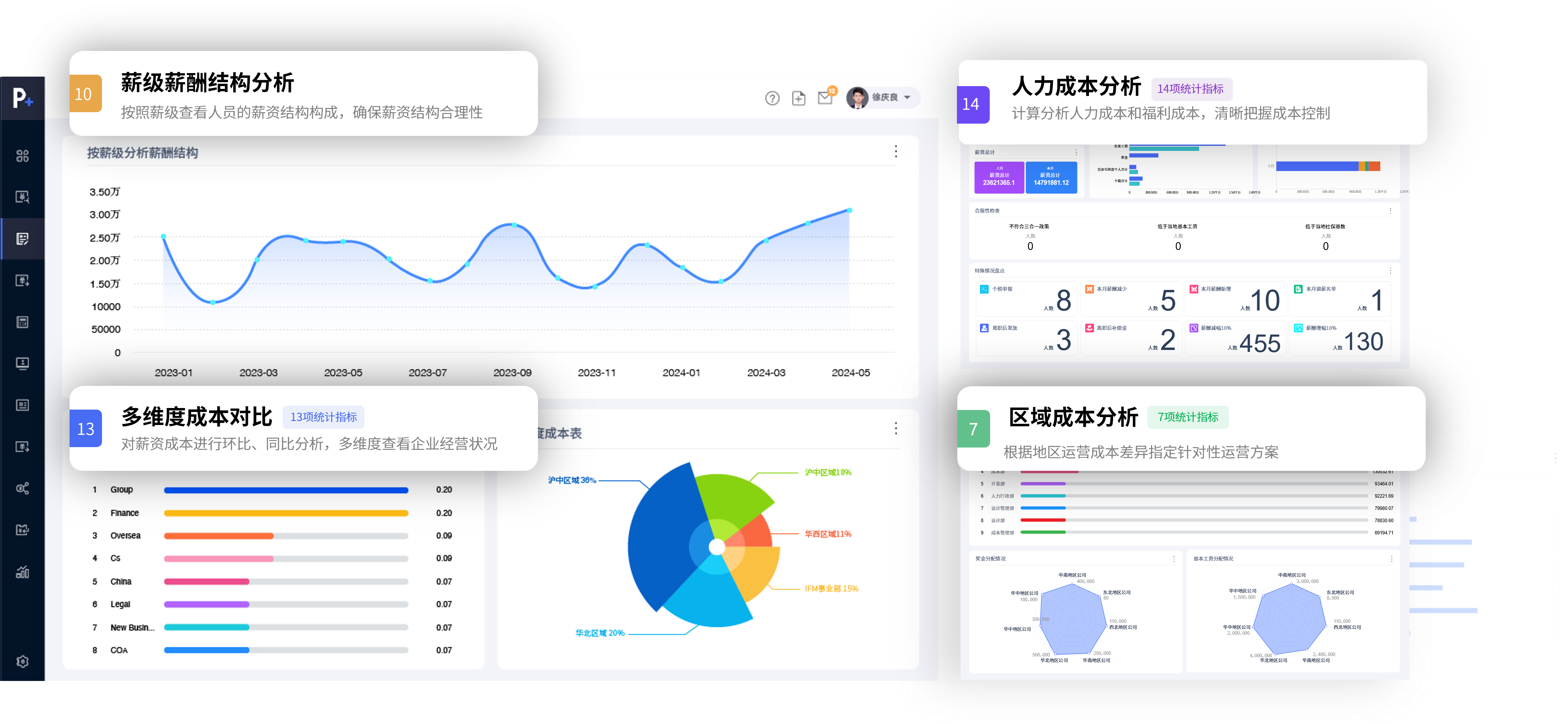 eRoad的People+平台报表中心协助HR摒弃繁琐的表格演算与汇总,清晰、快捷、实时生成多维的服务看板与分析报告,涵括人事动态、薪税报表、人力成本分析、社保公积金台账等,让管理者能多维度切换、多指标对比,真正意义上赋能战略决策。