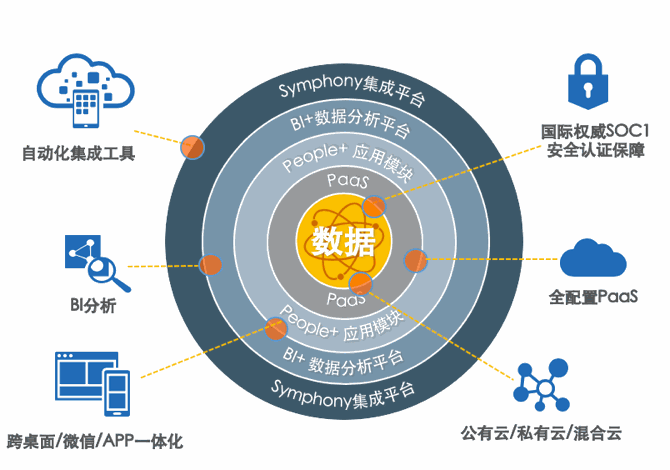 作为国内领先的HR SaaS管理平台,易路People+基于全可配置的PaaS技术,实现了系统的全参数化配置和拓展,通过参数语义化配置界面、图形化配置界面,在做到整体平台有着极高灵活性的同时,做到了系统易于实施、易于调整、易于运维和易于扩展。整体平台通过了国际权威的SOC1安全认证,并支持公有云、私有云、混合云部署。易路和客户共同创新,实现一年6次的快速迭代升级,从而确保我们的客户能在第一时间享有最新的技术、最新的产品,法律法规实时更新。