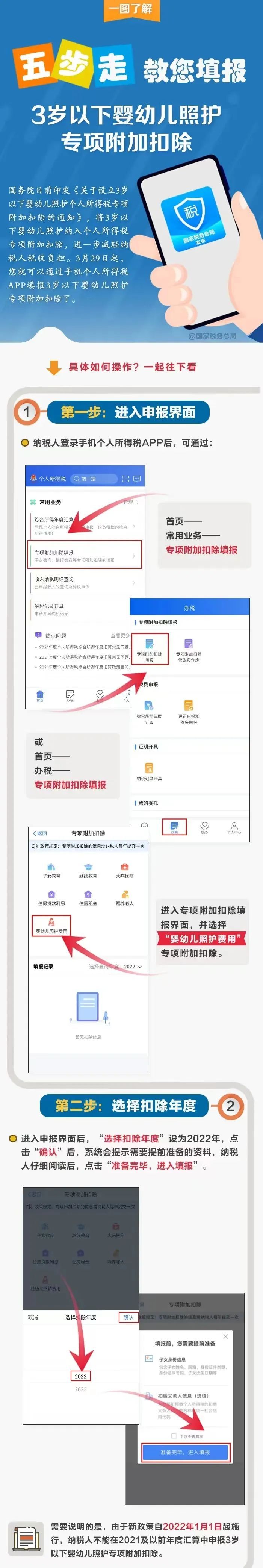 四、3岁以下婴幼儿照护个人所得税专项附加扣除自2022年1月1日起实施。